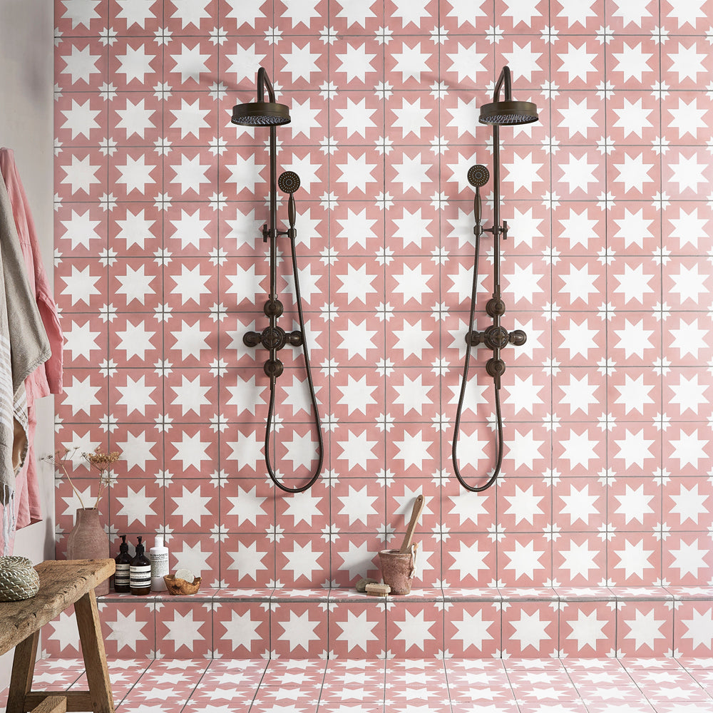 Home / Shop / Patterned Bathroom Tiles / Bert and May Pink Pradena Porcelain Tile