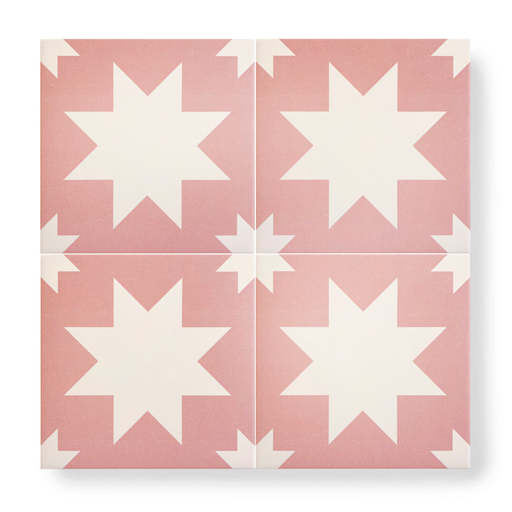 Pink brings a softer edge to the geometric design of this tile, giving it a calming feel.