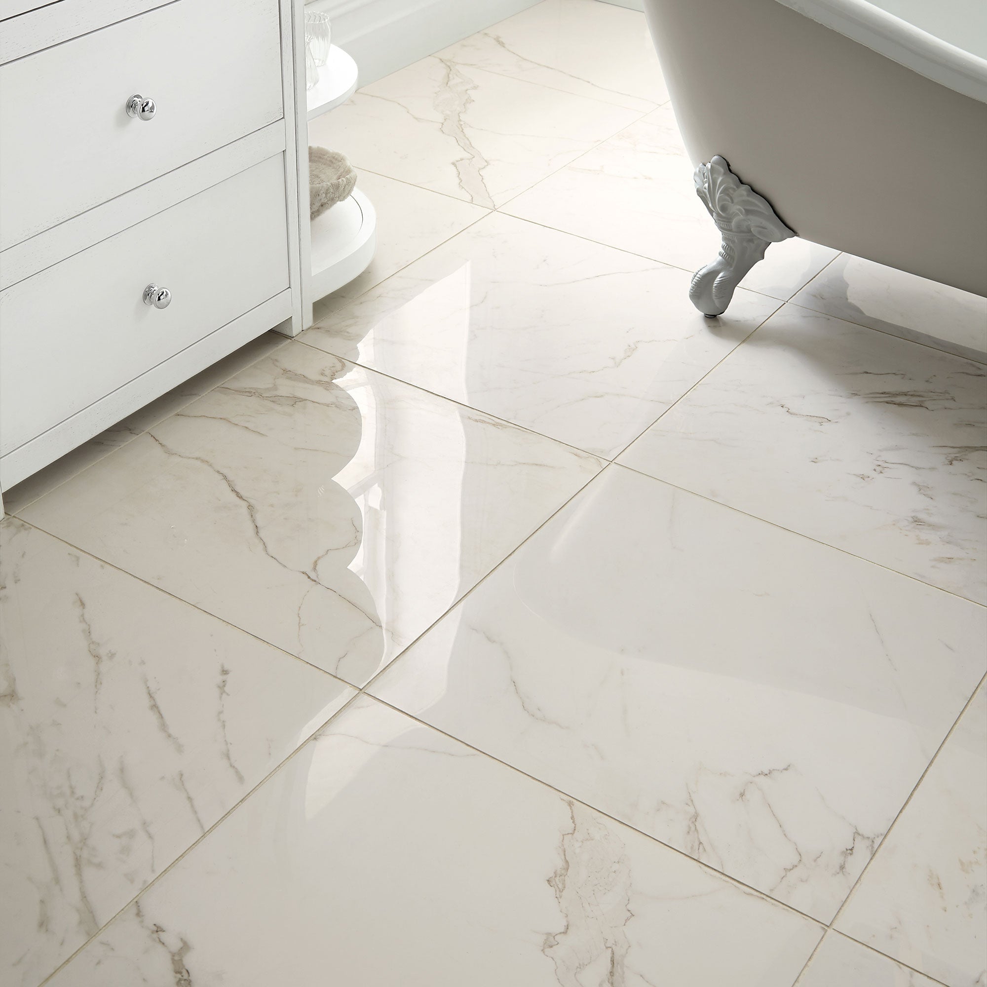 The North Beach porcelain tile range is the best marble lookalike we've found and with its eye-catching glossy finish it will make an impact in any room. It is named after the streets and prominent local families around the North Beach district of San Francisco whose beautiful and elegant homes inspired this collection.