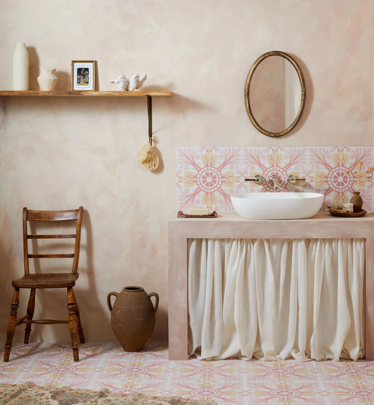 Reclaimed designs are at the very heart of the Fired Earth x Bert & May collections. This beautiful vintage design has been reimagined in soft, delicate pink and yellow tones from the Bert & May encaustic tile palette and brought to you in a practical porcelain tile.