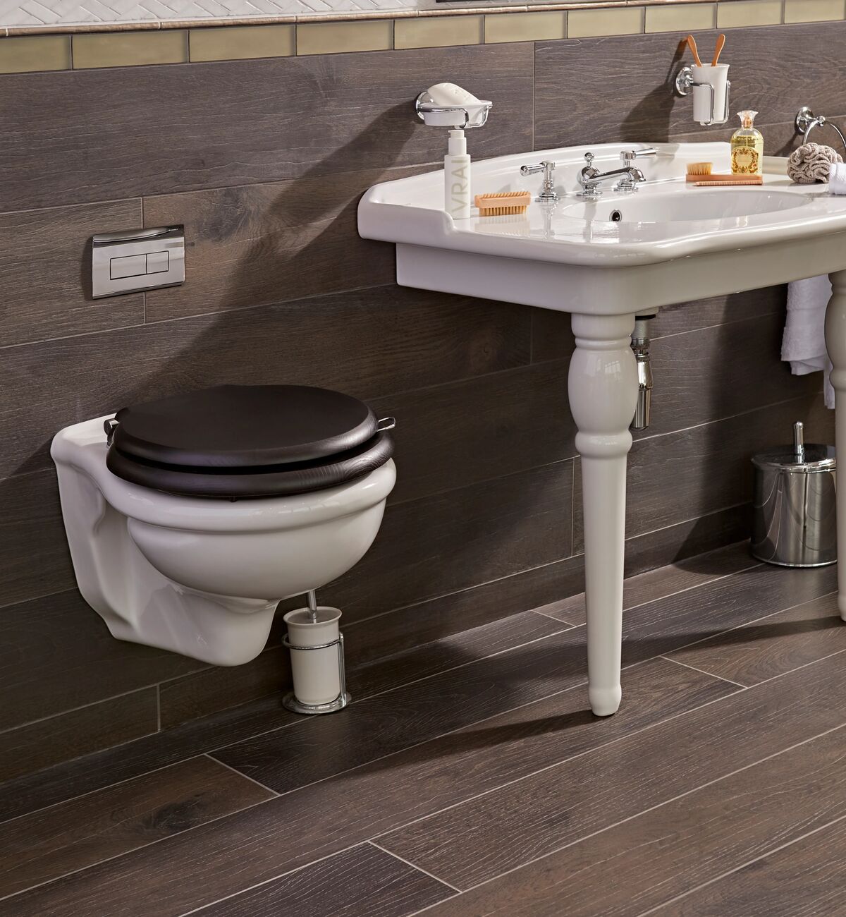 Modern looking wood imitation with the use of modern technology to look like the real thing and so it is perfect for bathrooms or other areas where natural wood is not always possible to use. This is a very versatile product.