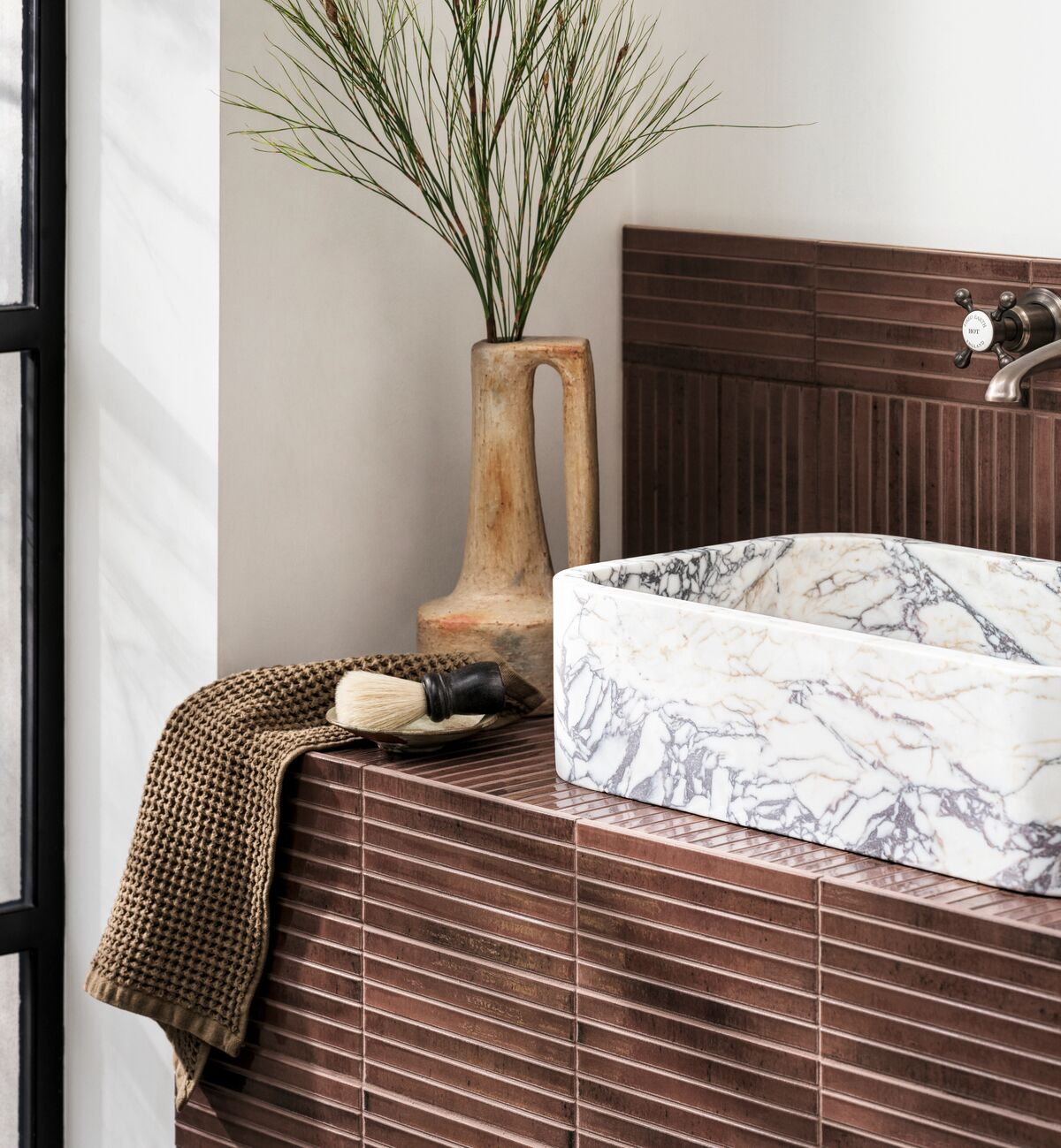 The Ixworth Mulberry tile is a beautifully glazed porcelain tile. The collection features a selection of brick tiles and kitkat tiles in seven colourways. With a glossy finish and rich hues, these textured tiles add a touch of sophistication to any space, making them perfectly suited for raditional and modern interiors as a bathroom tile, kitchen tile, shower wall tile or even a swimming pool tile.