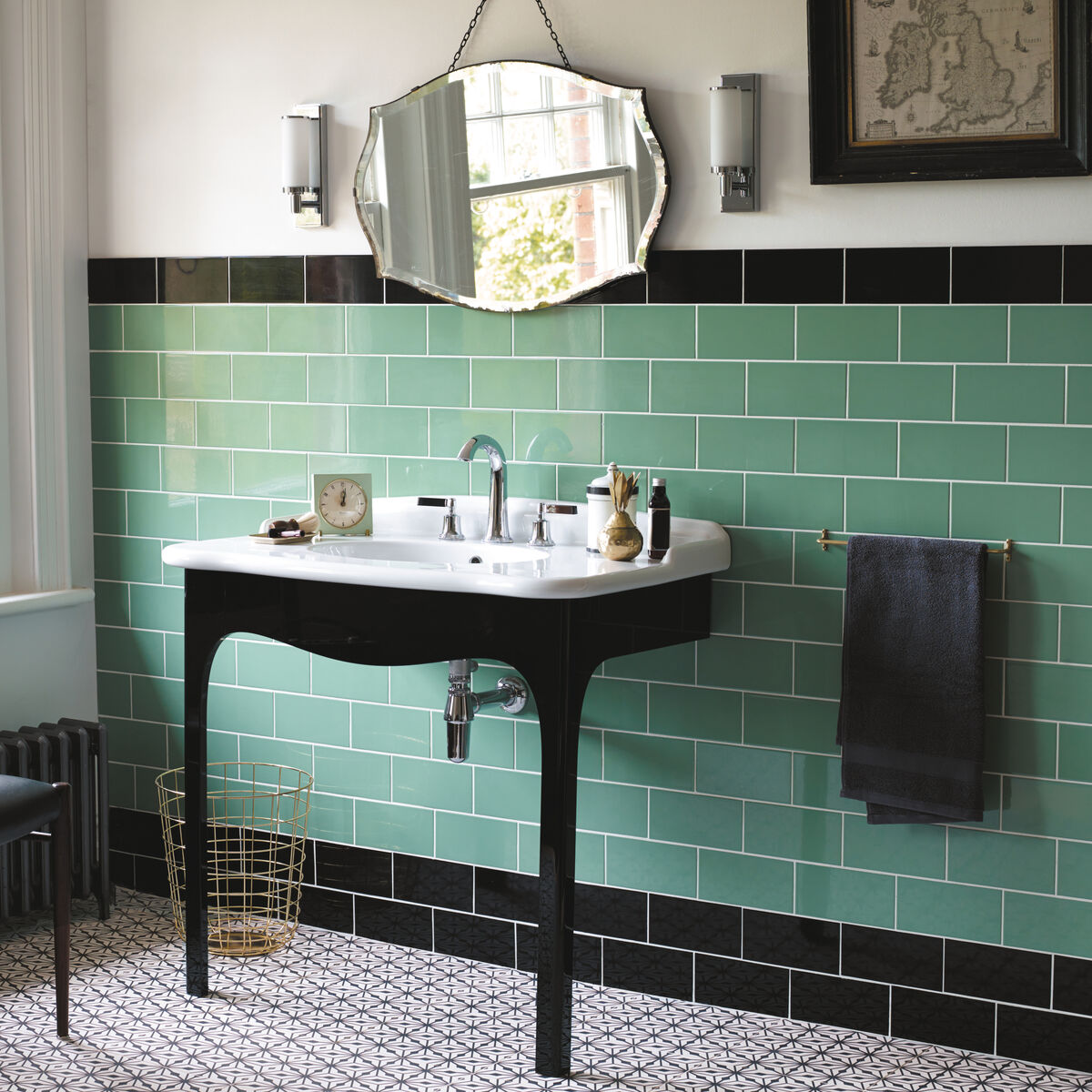 Inspired by the glazed tiles found in the foyers and washrooms of 1930s cinemas, these wall tiles embody the spirit of the Art Deco era. Made for us in Spain and exclusive in the UK, they come in the popular 10 x 20cm size and two exuberant colours, including a smart jade green that recalls the period’s elegance and glamour. Perfect as kitchen tiles or bathroom tiles.