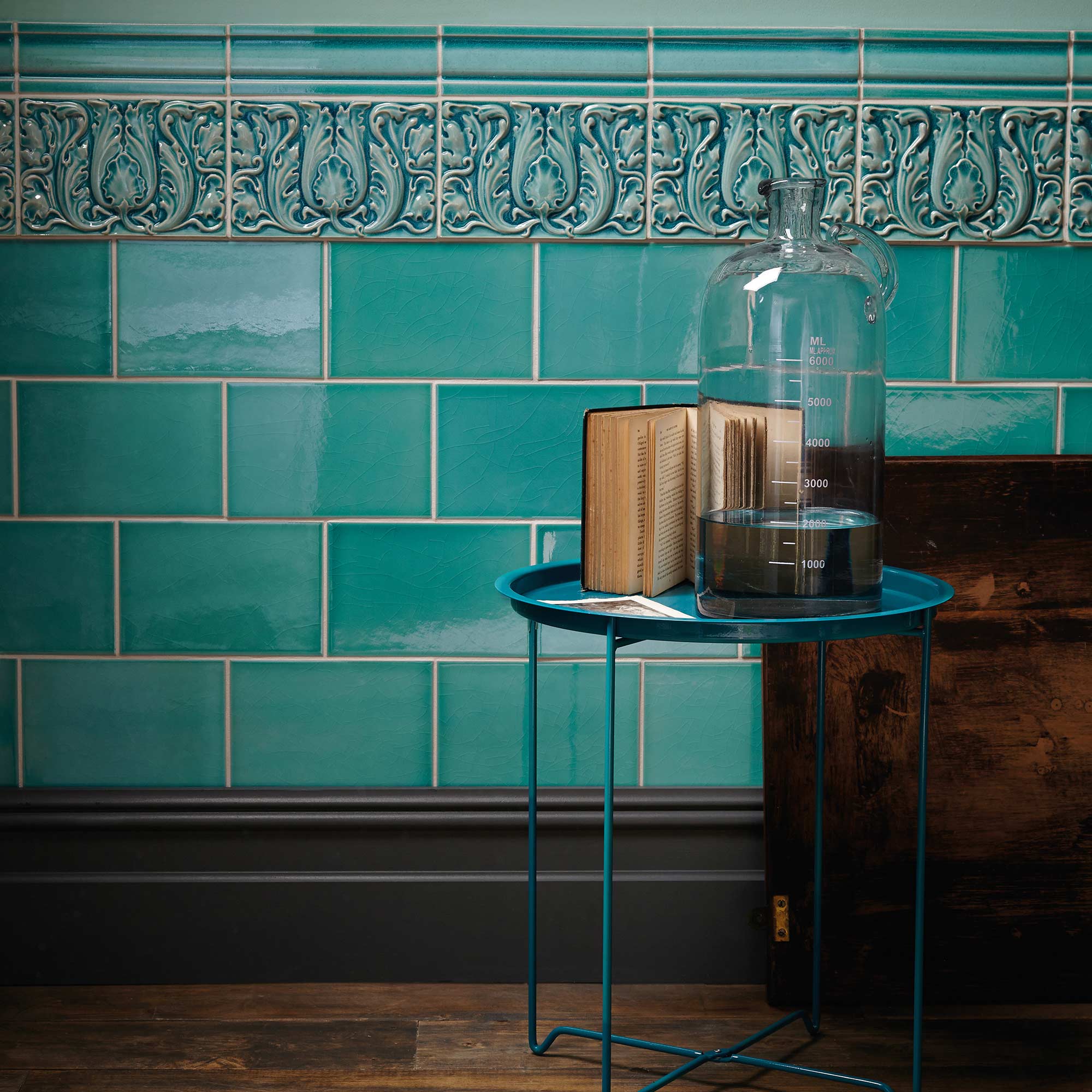 This range was inspired by architect and designer Leslie Green, who was commissioned from 1903 to 1908 to design over 50 tube stations in London. The Acanthus design has been recreated using moulds from the restoration of numerous locations to create the Edwardian range, available in both traditional and contemporary colours. To support this decor a complementary dado and base tile is available, both traditional in design and size.