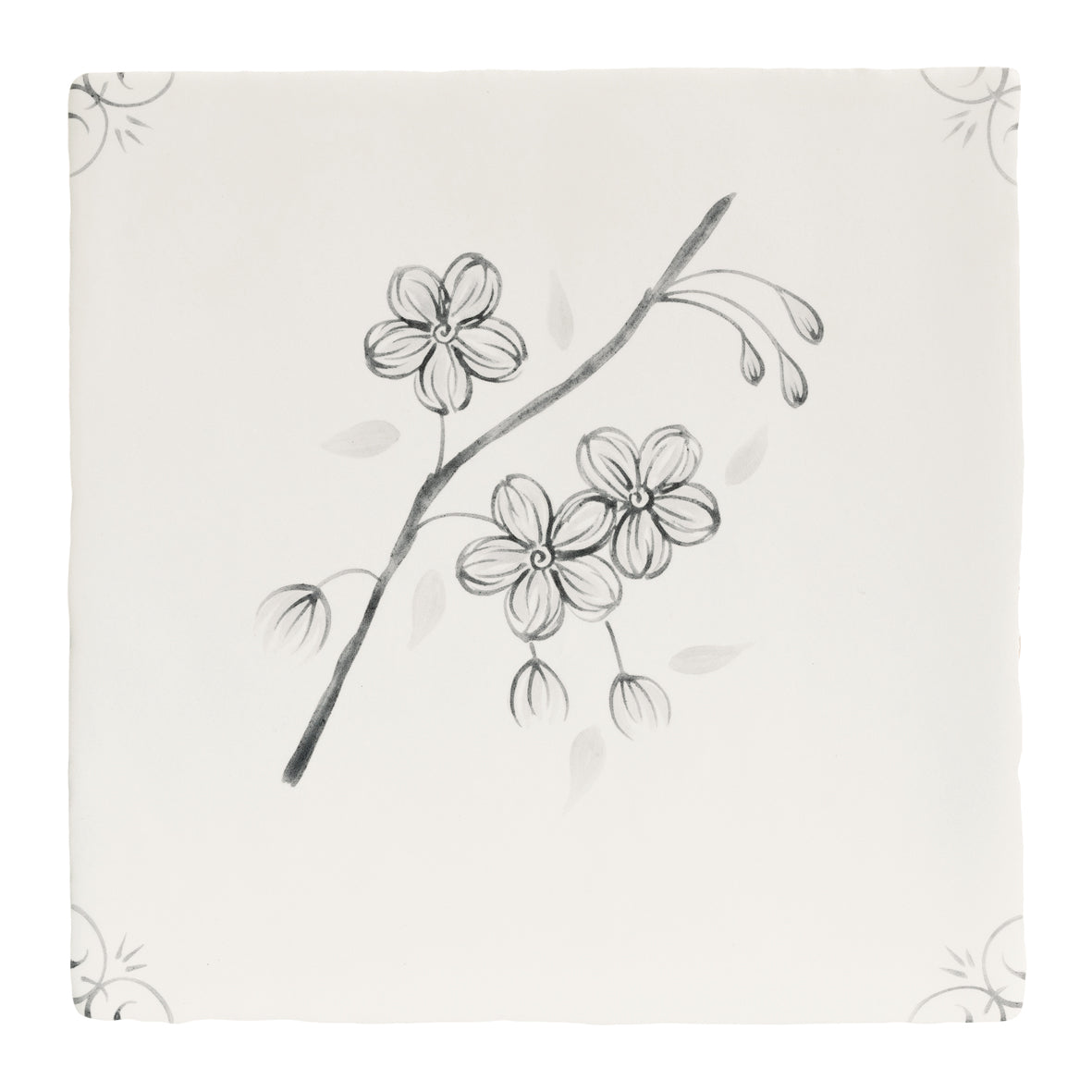 English Delft Snowdrop Charcoal Matt Tile