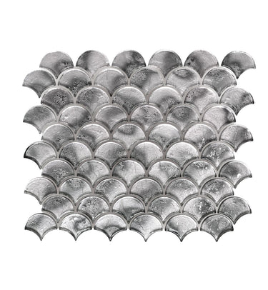 Metallic Vitreum Argentum Fan Silver Glass Tile