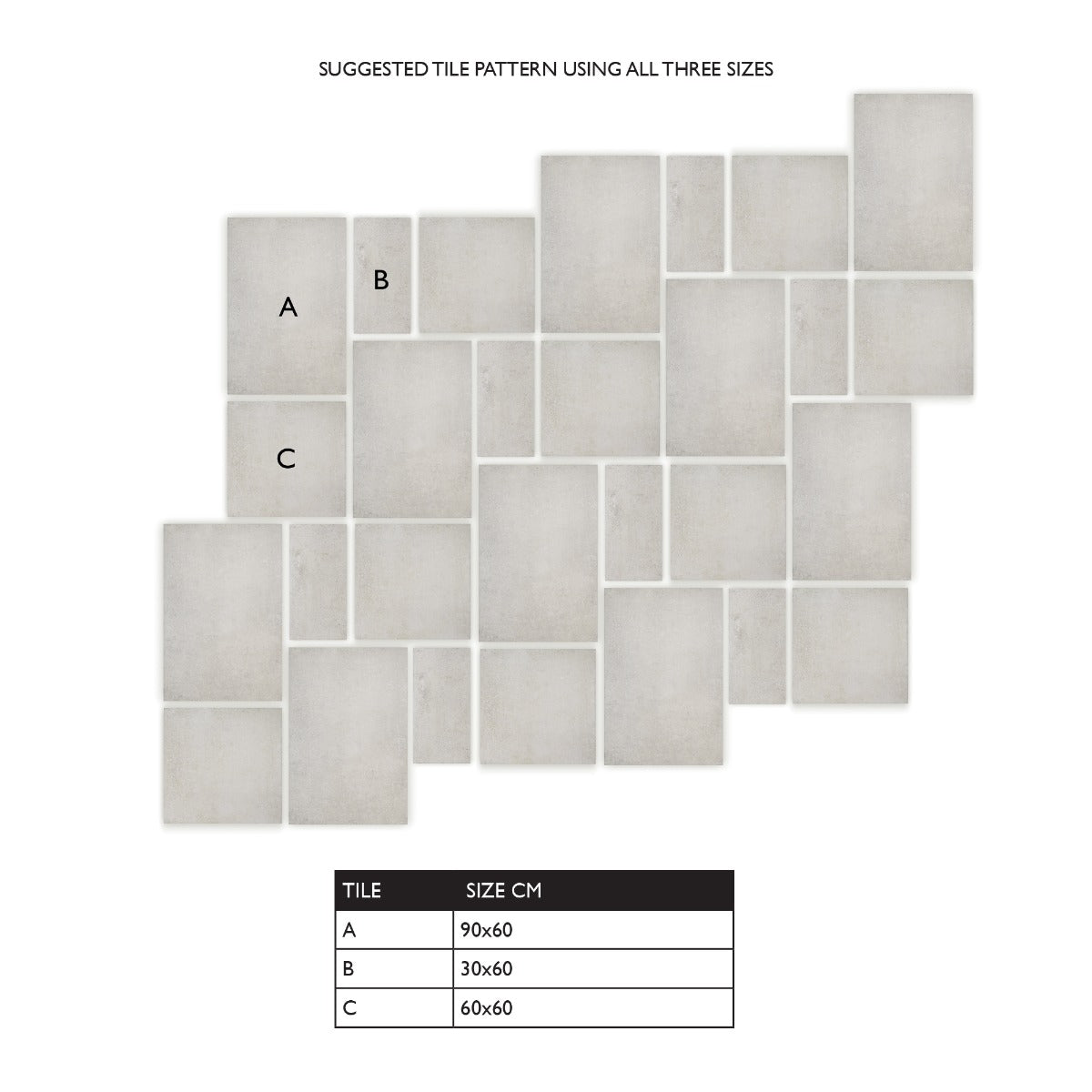 A Porcelain tile all with the same fixed width of 60cm, enabling you to install either in a free length design or a set pattern. The edge has a slight/soft tumbled effect.